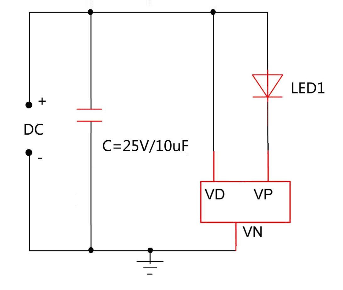 HX305的VD引腳加一個(gè)4.7uF左右的濾波電容,且該電容應(yīng)盡可能靠近VDD引腳和地。一方面,該濾波電容可以減小系統(tǒng)上電時(shí)VDD引腳的電壓尖峰,避免IC因過壓而損壞,另一方面,當(dāng)IC進(jìn)入過溫保護(hù)狀態(tài)時(shí),該濾波電容可以避免在電源VD上出現(xiàn)因輸出電流波動(dòng)而導(dǎo)致的大的紋波。