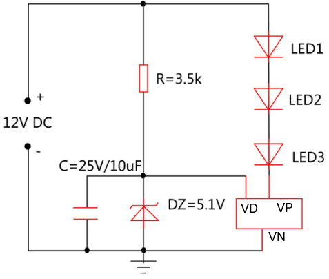 HX305無(wú)需外接其它元器件即可構(gòu)成一個(gè)恒流輸出的LED驅(qū)動(dòng)電路,除LED外。