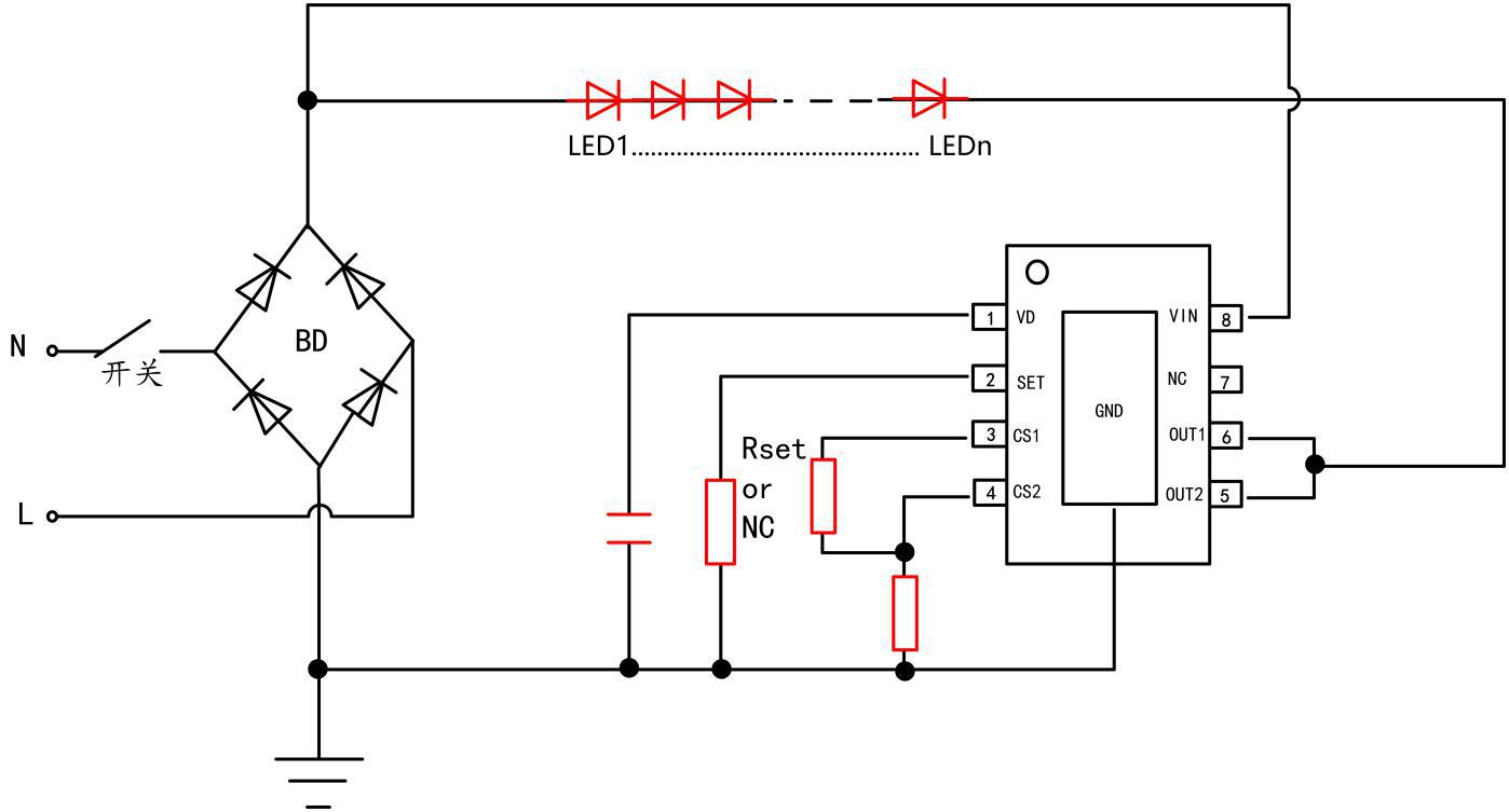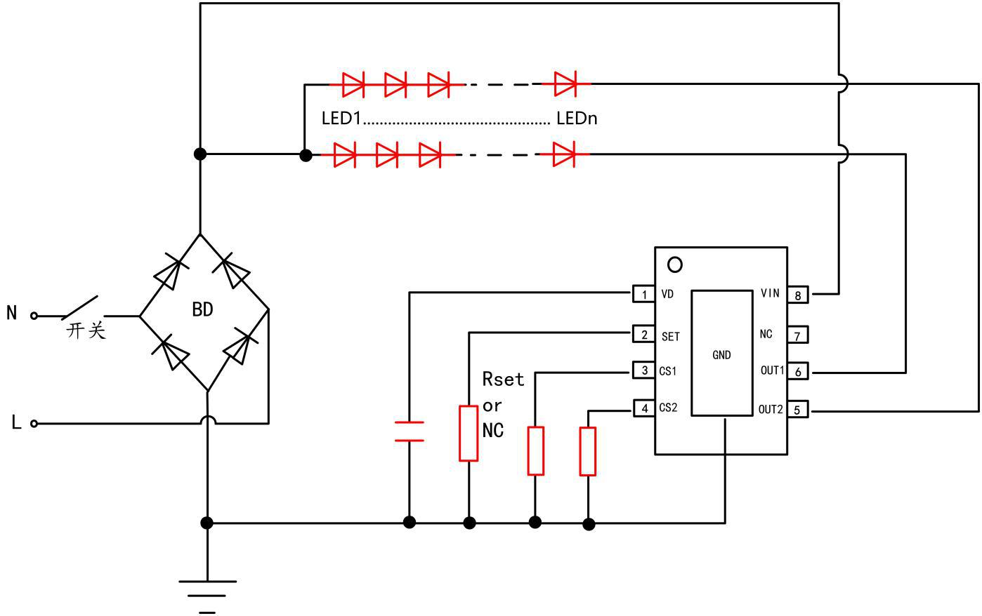 HX2088是一款開關(guān)調(diào)節(jié)亮度和色溫的LED恒流驅(qū)動芯片,集成了高壓MOS管和JEFT高壓供電功能,主要用于高壓線性恒流方案。