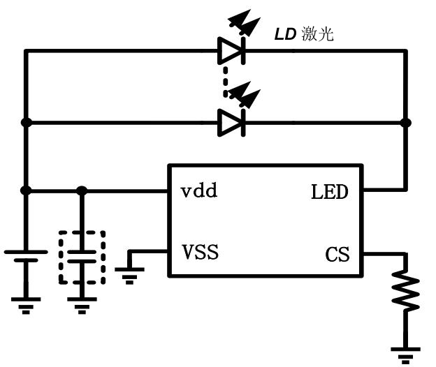 HX306C DC2.5-5V輸入,驅(qū)動2V 500MA LD 原理圖