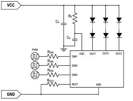 HX313是一款LED低壓恒流驅(qū)動(dòng)芯片,提供三通道恒定輸出電流,電流通過(guò)外接電阻(Rext)進(jìn)行設(shè)定,單通道電流輸出最大300mA,輸出端可承受最大電壓達(dá)42V。