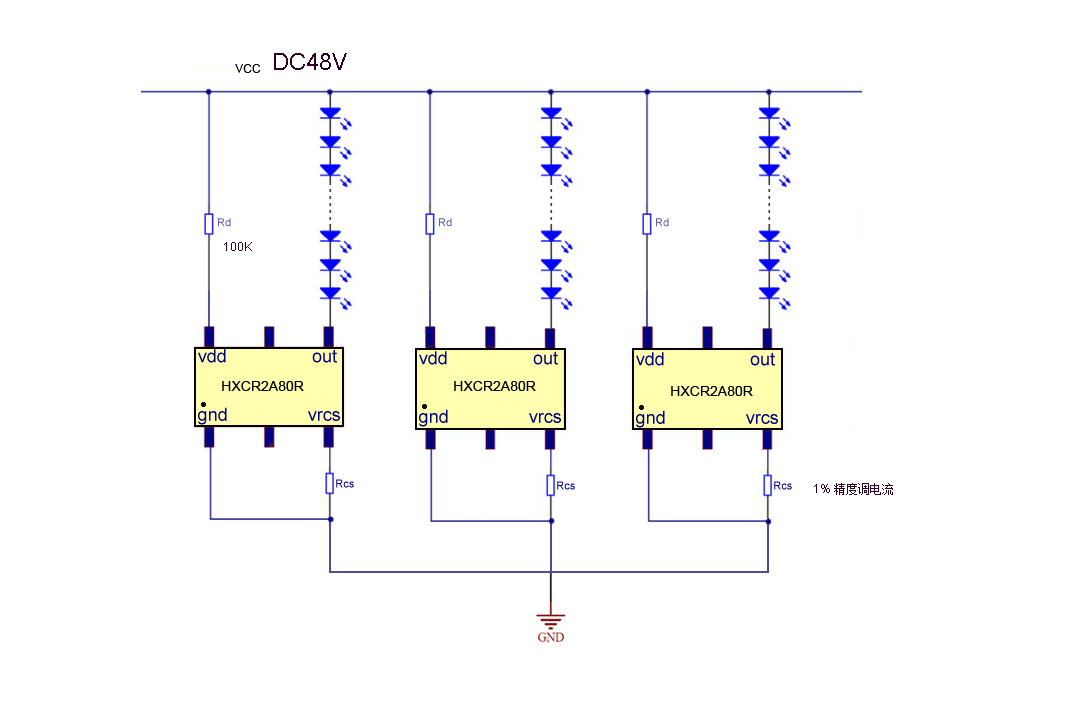 HXCR2A80R是一款內(nèi)置高耐壓功率器件恒流驅(qū)動(dòng)器,適用于軟燈帶、硬燈條和照明燈板等應(yīng)用的中低壓照明恒流驅(qū)動(dòng)器,具有良好的抗沖擊能力和高可靠性。LED電流由連接CS腳與GND腳的電阻RCS設(shè)定,恒流精度高,一致性好,LED電流也可以使用PWM調(diào)光控制。適用于恒壓電源供電,不需要額外組件,系統(tǒng)結(jié)構(gòu)簡(jiǎn)單,外圍元件極少,方案成本低。