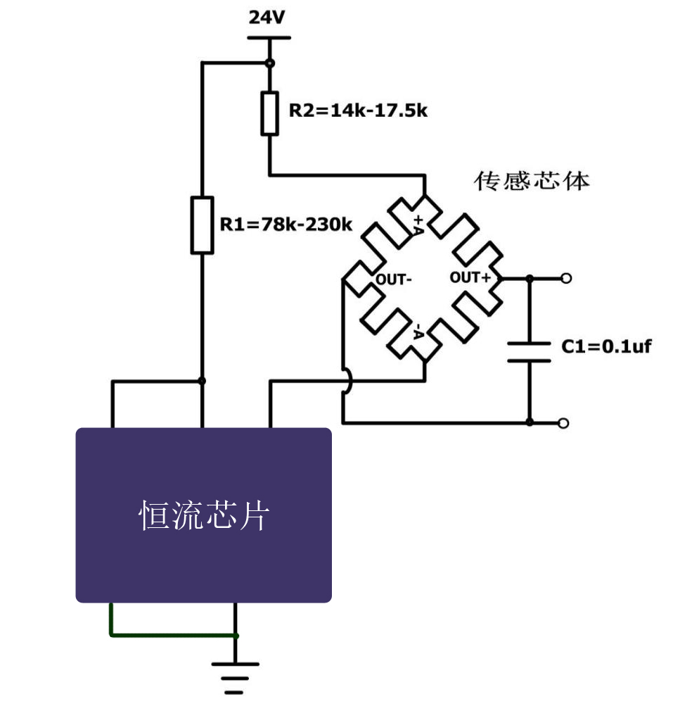 壓力傳感器一般都使用電阻橋輸出。需要在橋的兩端加上激勵,從另外兩端輸出。使用應變片電阻作為敏感元件。電阻橋有4電阻,2電阻和單電阻的三種。激勵方式可以是恒壓或恒流。當傳感器使用4個電阻時,使用恒壓或恒流驅動結果沒有區(qū)別。使用2個電阻時,恒流驅動仍保持線性。恒壓驅動的線性度會受到影響。