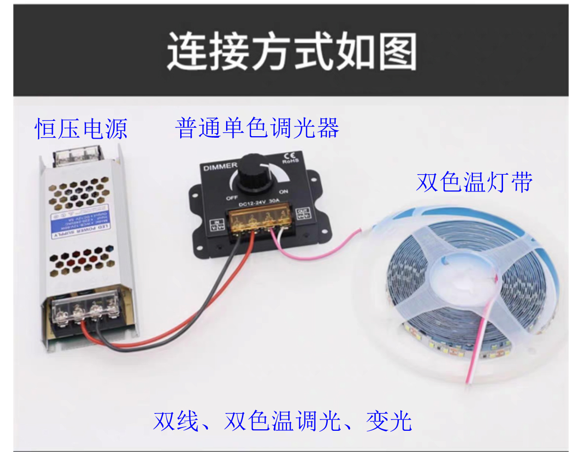 v 將PWM調(diào)光器串聯(lián)接入電源,使用兩種色溫不同的燈珠來實現(xiàn)色溫調(diào)節(jié),OUT1支路使用3500K色溫?zé)糁椋?/span>OUT2支路使用暖白2700K色溫?zé)糁椤?/span>